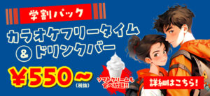 ※ワンドリンク制(室料とは別に、ワンドリンクorドリンクバーorアルコールバーor飲み放題のいずれかをご注文ください)